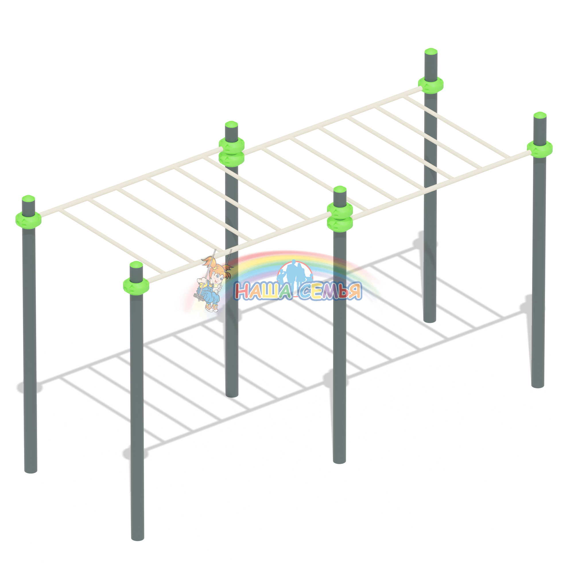 Рукоход для воркаут СХ-20 — предназначен для занятий спортом. Особенностью этого рукохода является то, что соединение отдельных частей выполнено хомутами, а не жестким соединением (сваркой). Что практично, удобно и дает возможность изменения высоты, а при необходимости и замены отдельных элементов.