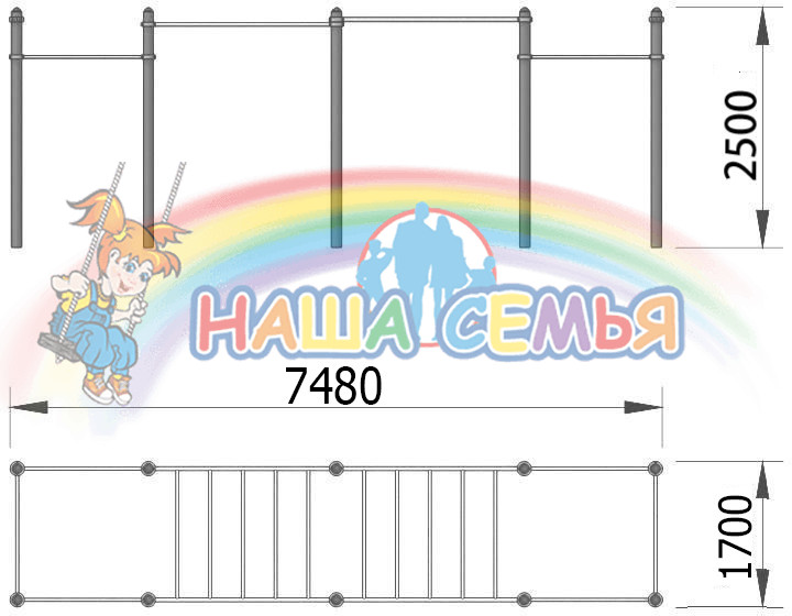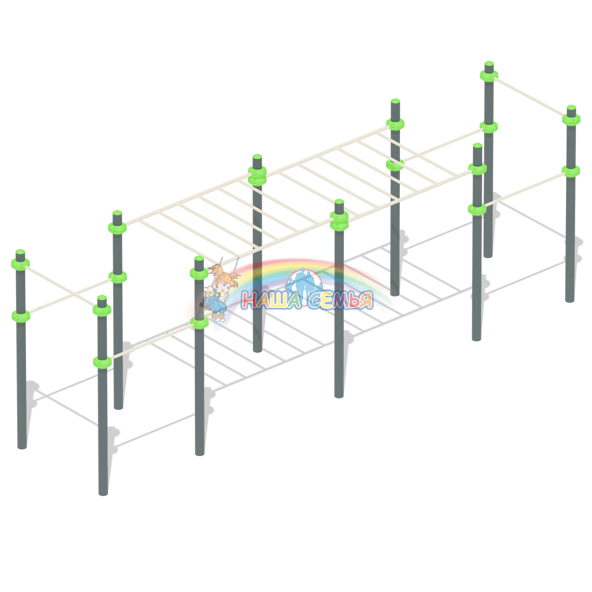Рукоход с турниками СХ-23 — предназначен для занятий физическими упражнениями воркаут. Удобное расположение спортивных снарядов в линию, позволяет разместить такой комплекс даже на небольшой территории спортивной площадки. В комплекс входят несколько разноуровневых турников и рукоход. Отличительной чертой этого комплекса является соединение отдельных элементов хомутами, а не жестким соединением (сваркой). Это позволит при необходимости изменить высоту элементов и заменить одни составляющие на другие.