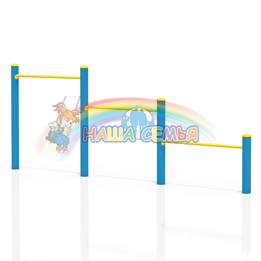 Комплект разноуровневых турников — Каскад турников Тип 2 предназначен для отжиманий и используется как дополнительный комплекс спортивных элементов к площадке для воркаута. Устанавливается на площадке: в парках, во дворах школ, во дворах жилых домов.