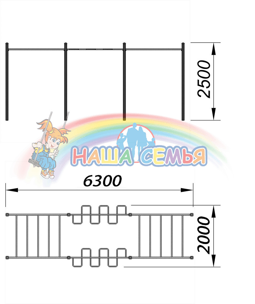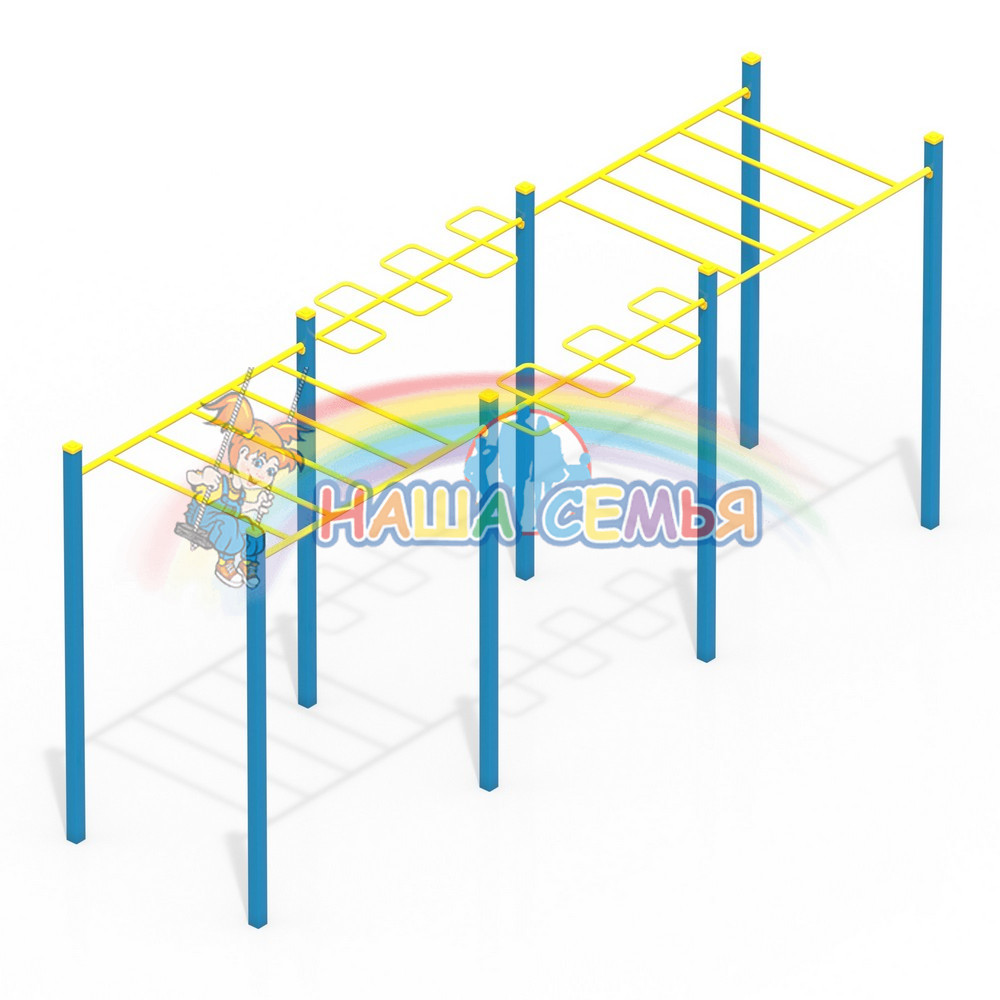 Спортивный комплекс для воркаут Тип 8 состоит из группы разноплановых рукоходов. Высота которых составляет два с половиной метра, а длина всей полосы более шести метров.