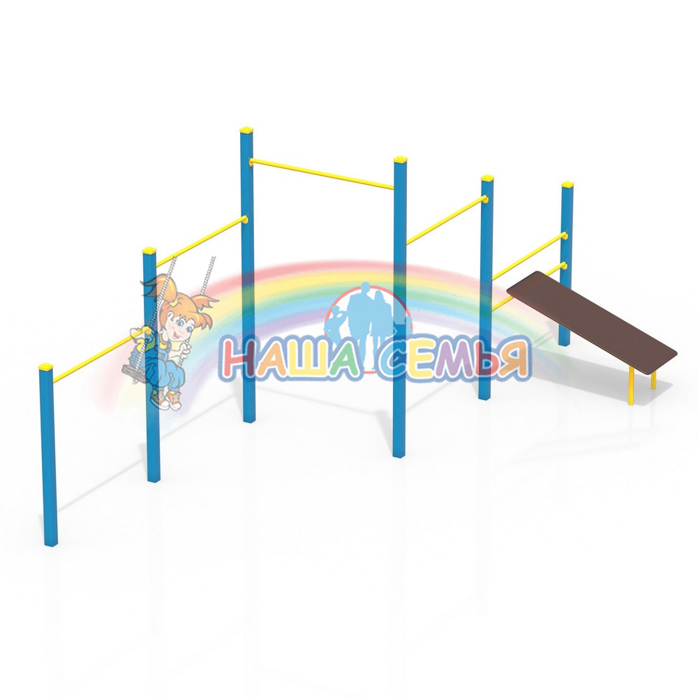 Турник Тип 7 — это целый комплекс турников с дополнительным спортивным снарядом для упражнений на пресс. Заниматься могут одновременно до пяти человек. Один из базовых элементов воркаута — это подтягивание. Оно помогает задействовать одновременно несколько групп мышц: мышц рук, грудные мышцы, мышцы спины и пресса. Устанавливается турник Тип 7 на открытом воздухе на любой площадке: в парках, во дворах школ, во дворах жилых домов.